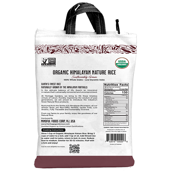 A wholesome and flavorful blend of organic long-grain brown rice and nutrient-rich wild red rice, our Organic Himalayan Nature Rice offers a hearty texture with a naturally nutty, earthy taste. The long grains cook up fluffy while the wild red rice adds depth, color, and a satisfying chew.